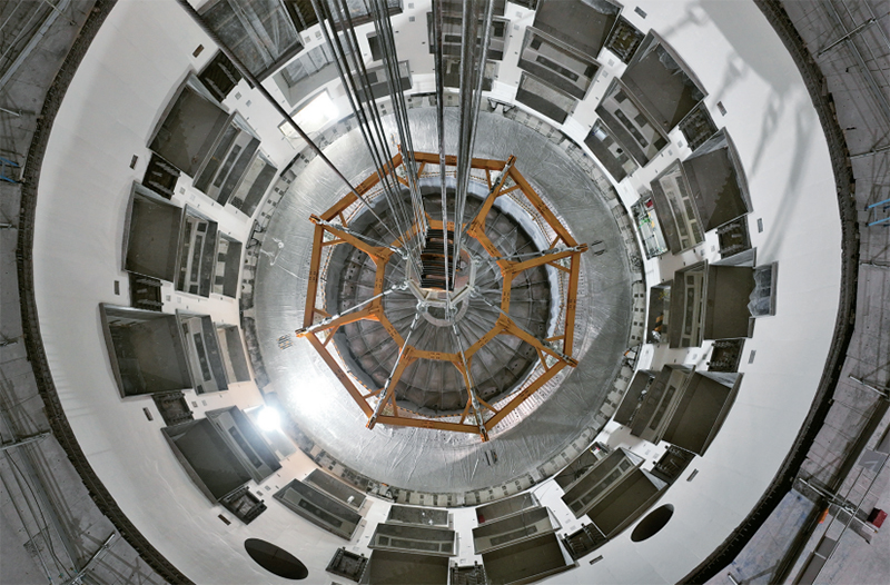 2025年10月1日上午,位于安徽合肥未來大科學(xué)城的緊湊型聚變能實驗裝置(BEST)主機(jī)首個關(guān)鍵部件——杜瓦底座成功落位安裝,標(biāo)志著項目主體工程建設(shè)步入新階段。該裝置建設(shè)的穩(wěn)步推進(jìn),對于我國率先開展前沿聚變科學(xué)研究、驗證未來聚變堆關(guān)鍵技術(shù)、持續(xù)引領(lǐng)國際聚變能發(fā)展具有重大戰(zhàn)略意義。圖為在裝置建設(shè)現(xiàn)場拍攝的杜瓦底座(無人機(jī)照片)。 新華社記者 周牧/攝