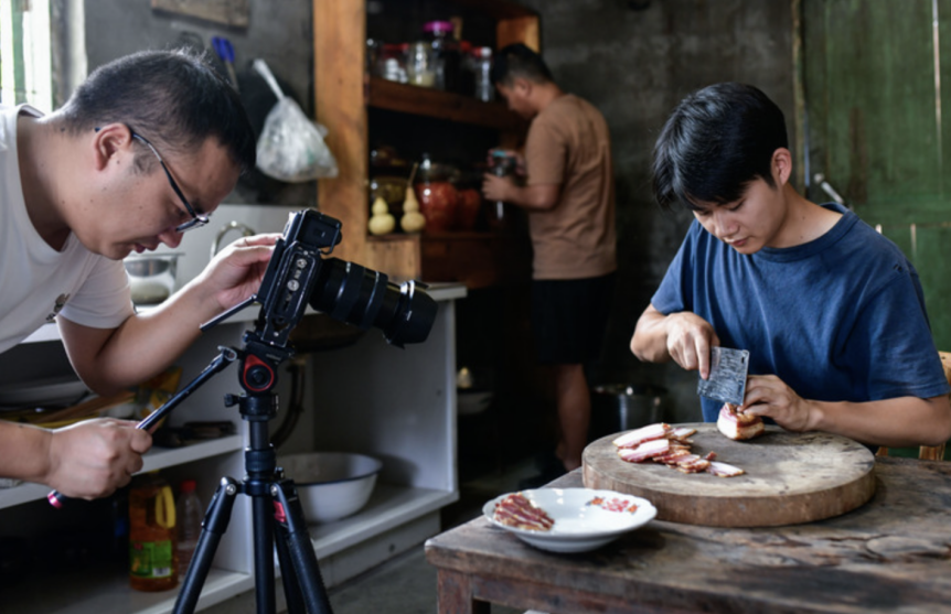 在貴州銅仁陳家寨村,“念鄉(xiāng)人周周團(tuán)隊(duì)”用鏡頭記錄鄉(xiāng)村生活的點(diǎn)滴,將質(zhì)樸的鄉(xiāng)土氣息與現(xiàn)代傳播方式融合,讓更多人通過屏幕觸摸鄉(xiāng)村振興的脈動。圖為團(tuán)隊(duì)正在拍攝短視頻。新華社記者楊文斌∕攝